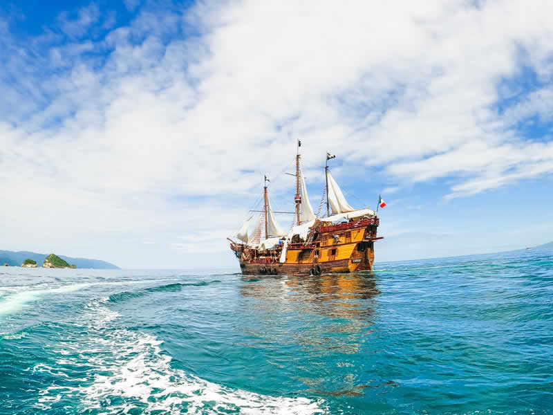 Comienza el día disfrutando de un delicioso y completo desayuno Bajo el Mar, en nuestra Taberna Pirata, abordo de un increíble Galeón de 700 toneladas, lleno de aventura y diversión. Déjate consentir por la naturaleza en la Isla de Majahuitas (Reserva Ecológica), mientras realizas diferentes actividades de Playa y Mar, tales como el Snorkeling, el Tour de Kayaks, Paseo en Banana, Volibol Playero, Búsqueda de Tesoro, y más.